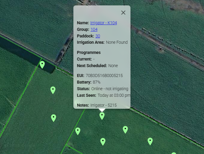 Driving paddocks to switch sprinklers or verify status eats time and fuel.